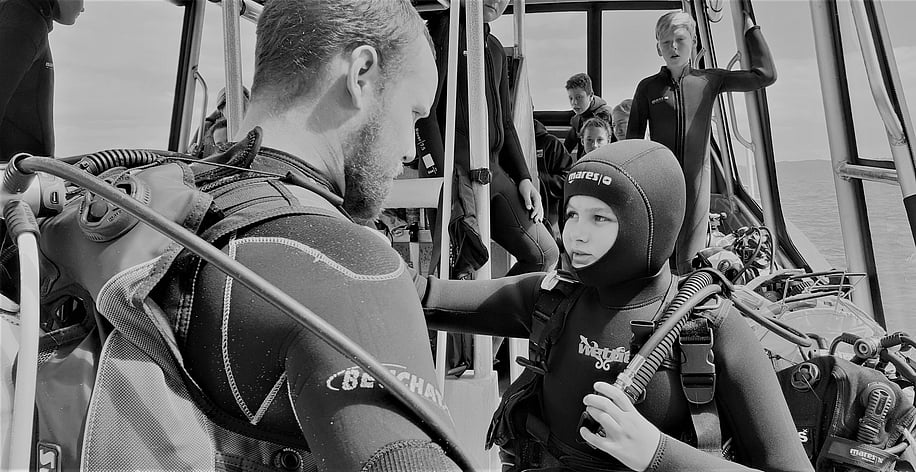 Our specially designed kids dive training program - If you have a keen bean dive kid, then undertaking their PADI Open Water dive training could be for them. Able to be done from 10 years of age. Children do the same training as adults but are rated as a Junior up until the age of 15. This comes with various restrictions - but lets them get in the water and start dive lessons with appropriate supervision (10 - 12 year old with legal guardian or PADI Pro and max depth of 12 metres) (12-15 year old's with adult certified diver) See here for the full course details: Padi Open Water Diver