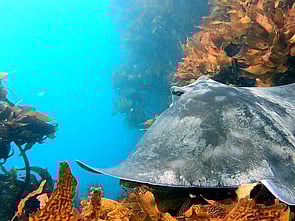 Eagle rays frequent these areas and are always a highlight to see gliding gracefully around the reef or sleeping in a sheltered spot. Their slightly larger cousins, the Shorttail stingray are also a common sight, undulating its wings around the reef like a magic carpet. The Longtail stingray growing up to four metres long is a rarer treat but has been known to congregate in large groups in the area. If your dive happens to be in the Te Whanganui-a-Hei Marine Reserve, then chances are you'll meet a big group of very large Snapper or spy the large Crayfish boldly edging out of their hiding places to check out.