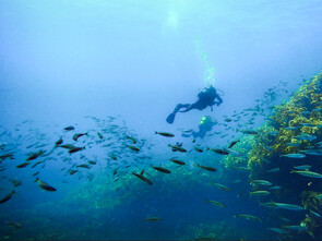 Eagle rays frequent these areas and are always a highlight to see gliding gracefully around the reef or sleeping in a sheltered spot. Their slightly larger cousins, the Shorttail stingray are also a common sight, undulating its wings around the reef like a magic carpet. The Longtail stingray growing up to four metres long is a rarer treat but has been known to congregate in large groups in the area. If your dive happens to be in the Te Whanganui-a-Hei Marine Reserve, then chances are you'll meet a big group of very large Snapper or spy the large Crayfish boldly edging out of their hiding places to check out.